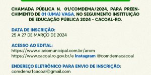 COMDEMA anuncia Chamada Pública para preenchimento de uma vaga de Conselheiro no segmento público na área de educação